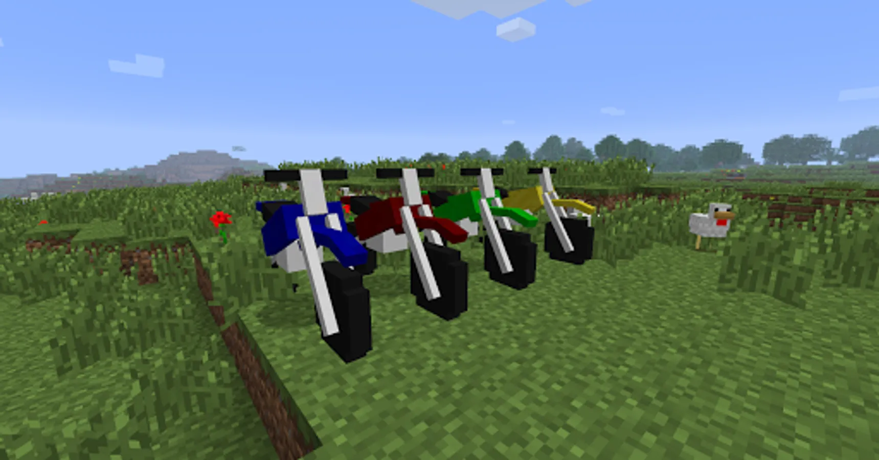 There are two ways to get a motorcycle. You can either find it in your MCPE world, or use the spider's egg spawn or cave spider egg to create it. A total of five texture packs are available, each containing colors for two different motorcycles.