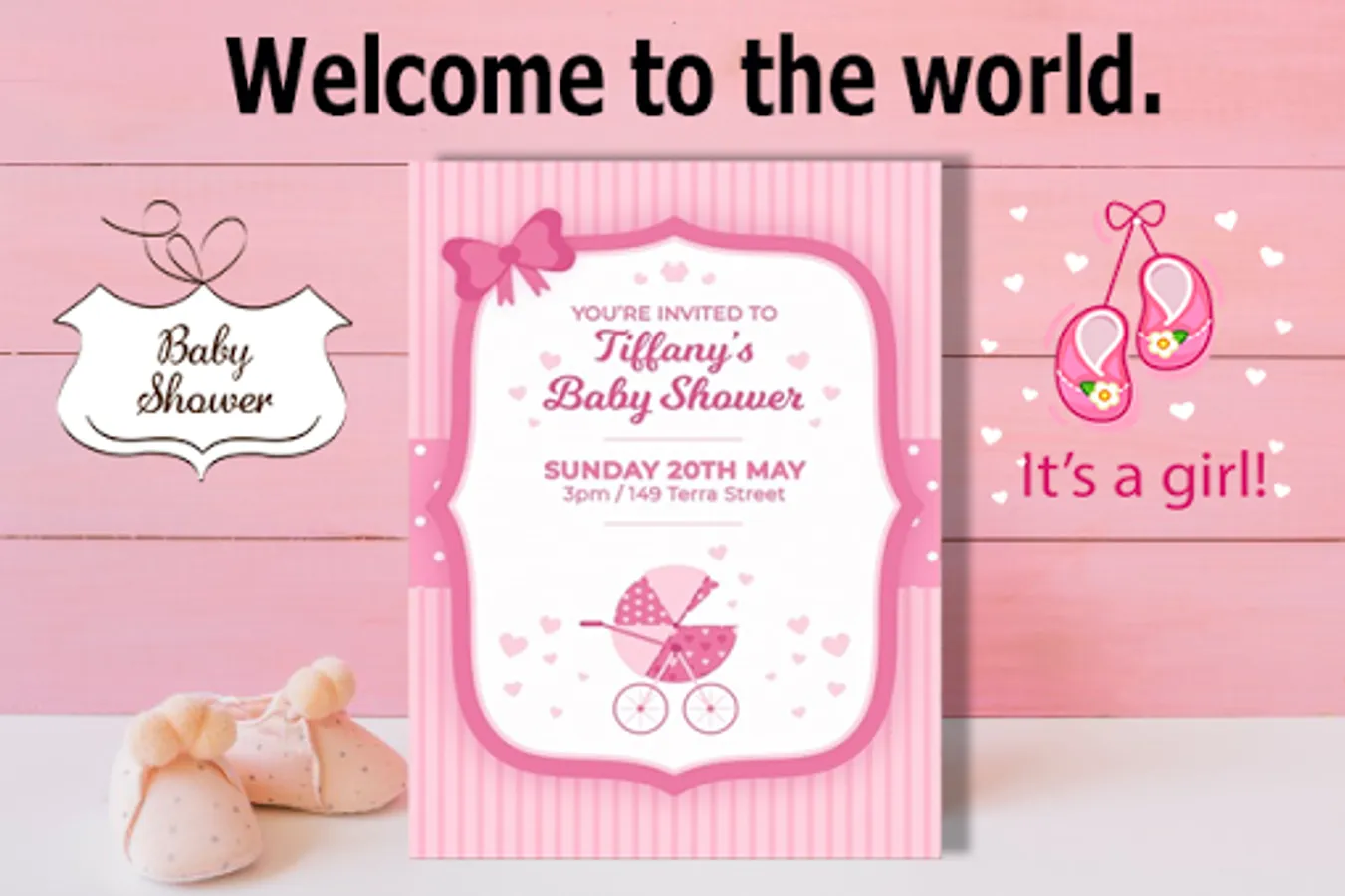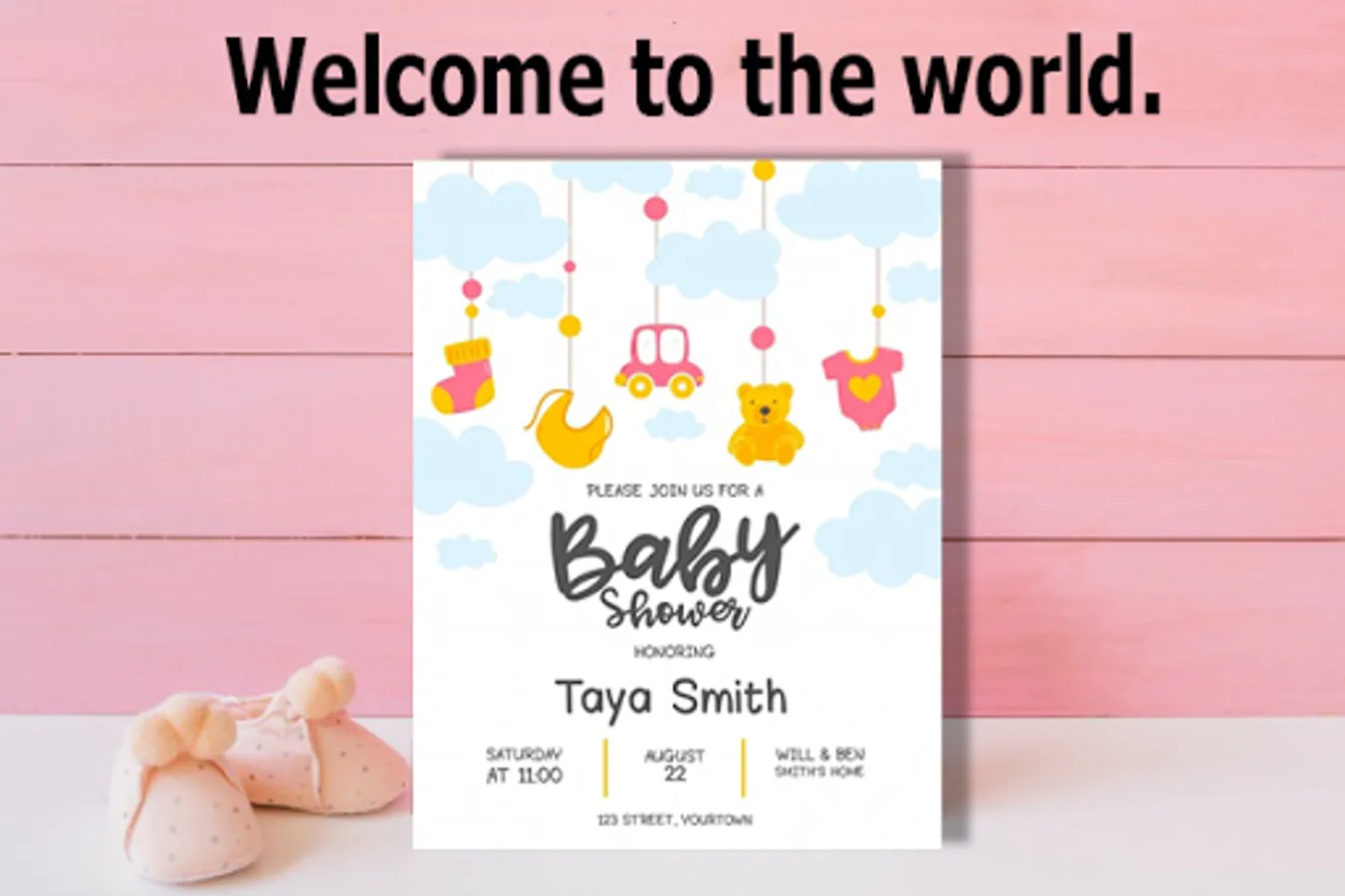 Baby Shower invitation template to create invitation cards.