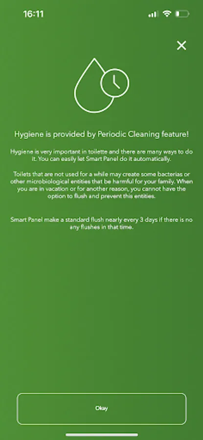 The mobile application offers additional benefits such as comfort, usage data display, remote control and updating. The status of the WC and the flushing system can be monitored and controlled via the mobile app anywhere with a network connection.
