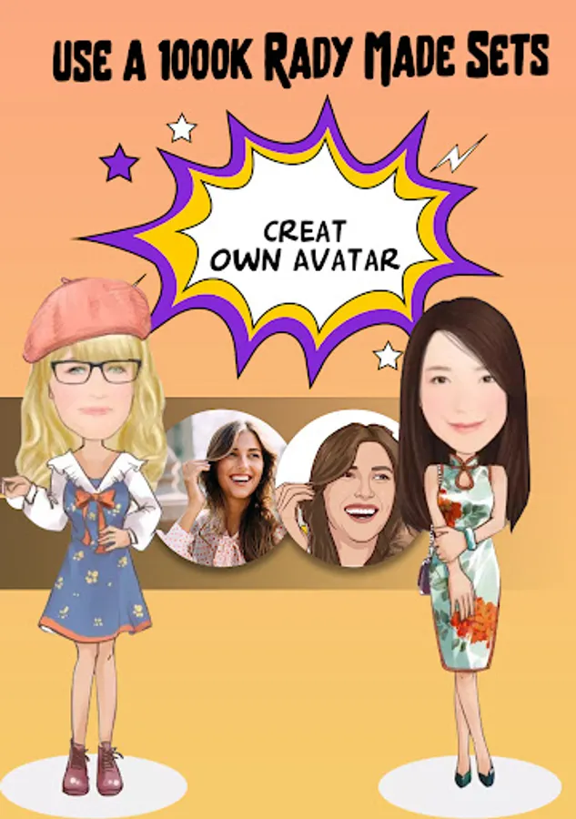 Avatar Maker is a unique character creator from more 1000+ ready made sets with different characters make Your Personal Avatar Maker.