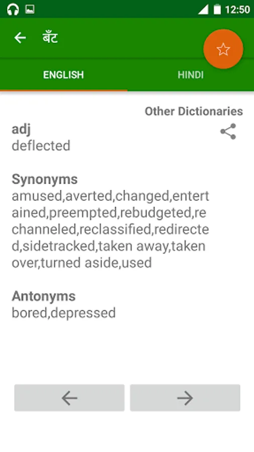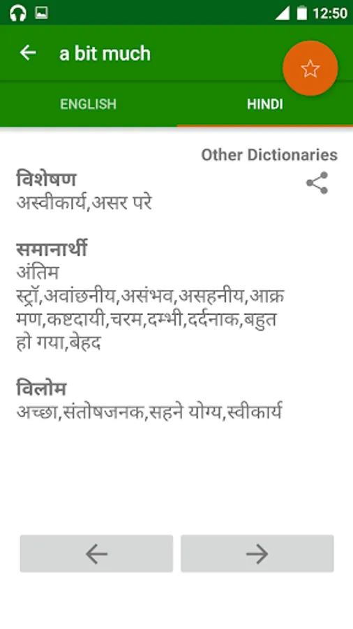 - 4 Dictionaries in 1 (English to Hindi , Hindi to English , English to English and Hindi to Hindi Dictionary)