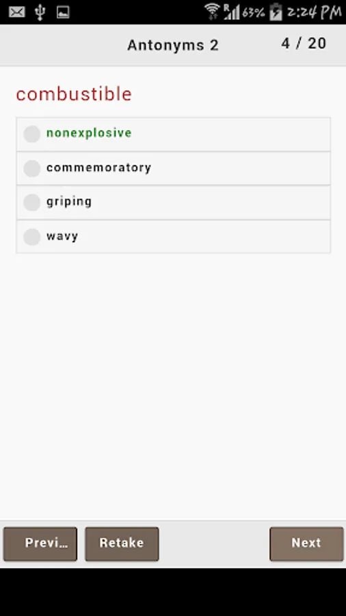 Over 5000 questions are organized in format of tests in which you can judge your vocabulary skills and become perfect in antonyms and synonyms