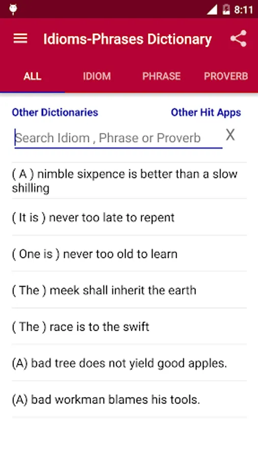 Now No internet Required for word searching . Its time to learn about idioms , phrases and proverb meanings along with usage on the go , offline now.