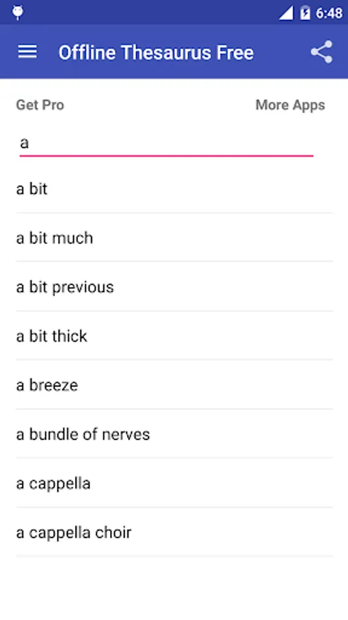 This dictionary cum thesaurus app will help you in your career plan and helps in preparation of GRE , GMAT and other MBA and other english exams .