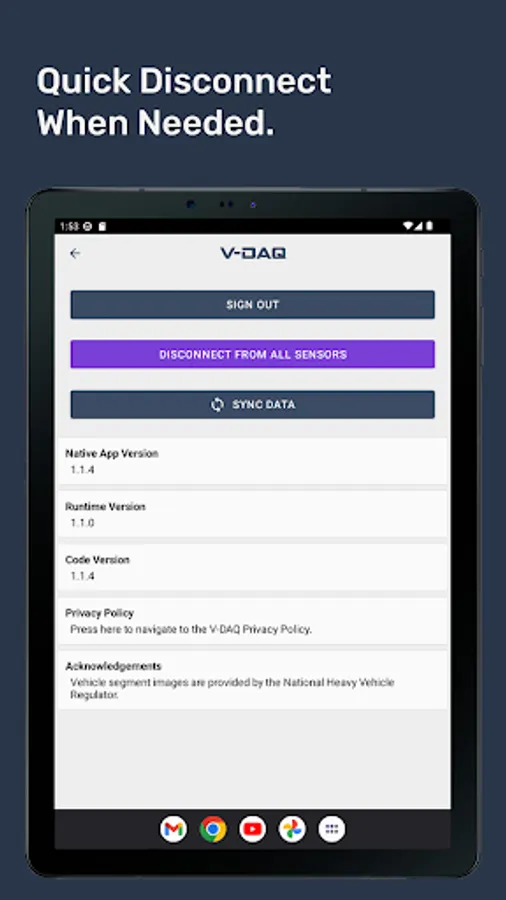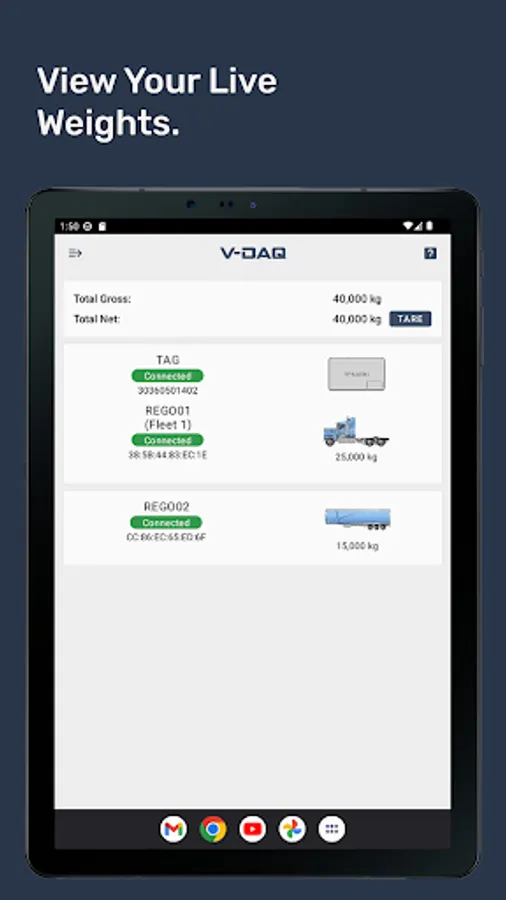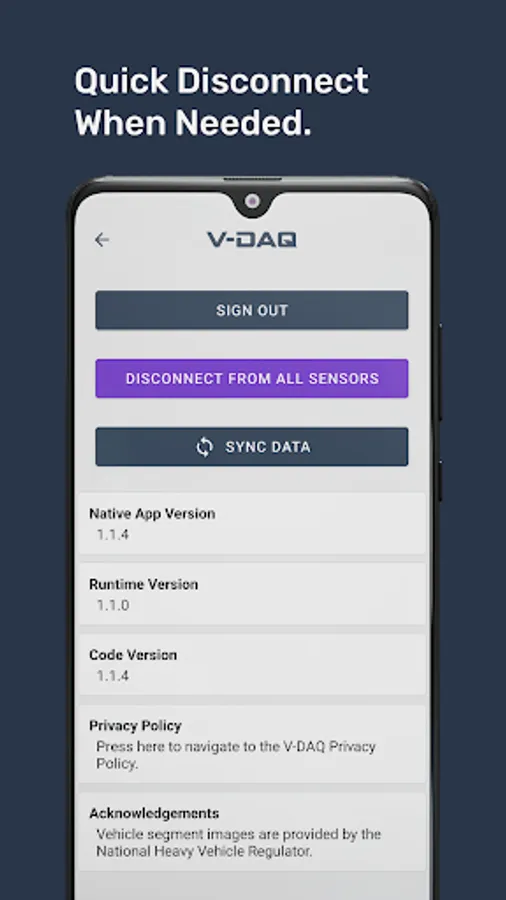 Introducing V-DAQ Wireless OBM, the latest addition to our suite of regulatory telematics solutions. This app allows drivers to connect and view live axle mass data from their Wireless OBM scales, ensuring compliance with heavy vehicle regulations. With easy-to-use features and expert support, V-DAQ is committed to making regulatory telematics simple.