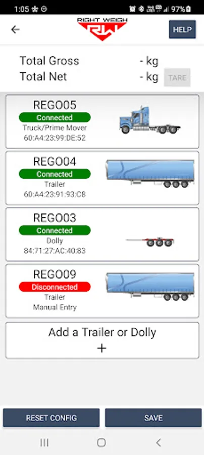 - Connect with and view live axle mass data from your Right Weigh OBM Scales.