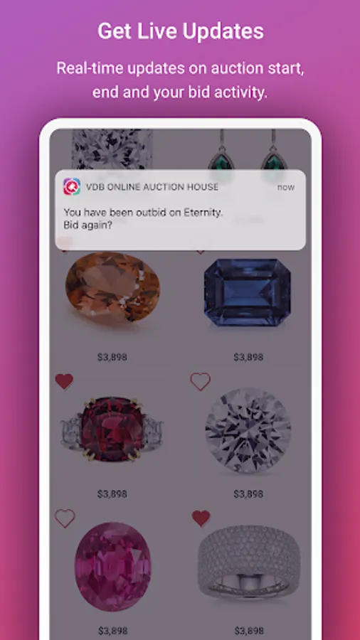 Retailers: Never miss an important diamond auction or lab-grown diamond auction again. The VDB Online Auction House is the app for people looking for excellent prices on diamonds and jewelry. Purchasing jewels at auction will typically result in purchasing fine goods from 20% to 30% off.