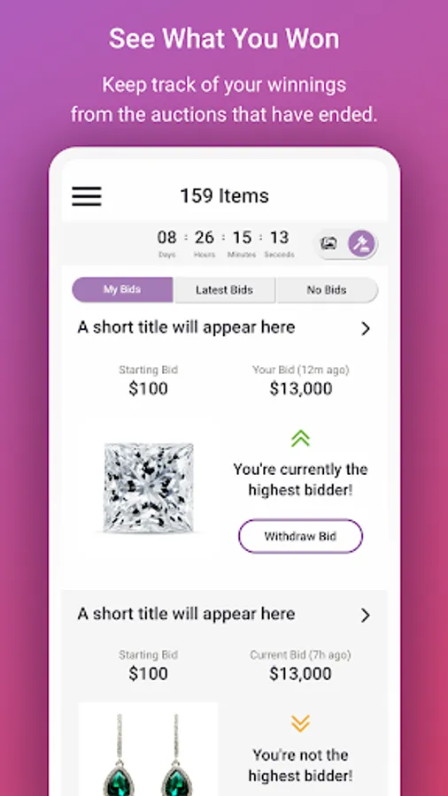 Buy and sell diamonds and lab-grown diamonds through online auctions, worldwide, 24/7. VDB’s Online Auction House app is a platform for retail and wholesale jewelry businesses to securely buy and sell jewelry in the international jewelry business community.