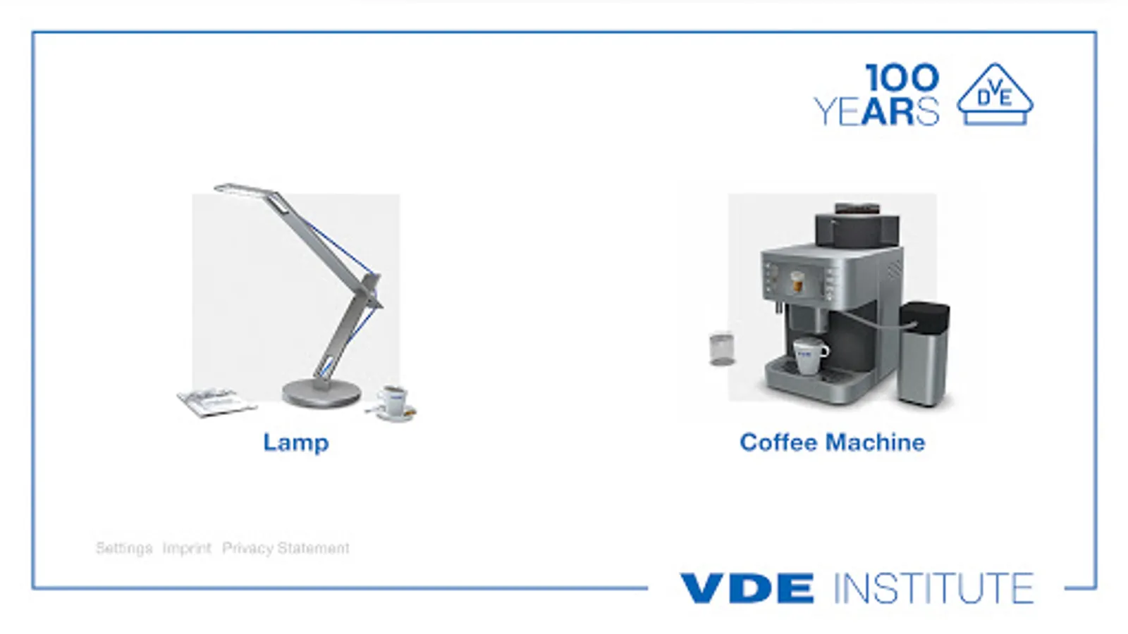 Zoom in on the product, turn it, switch it on and off - through gamification, clearly written descriptions and clear pictures, we playfully bring you closer to the extensive range of VDE tests.