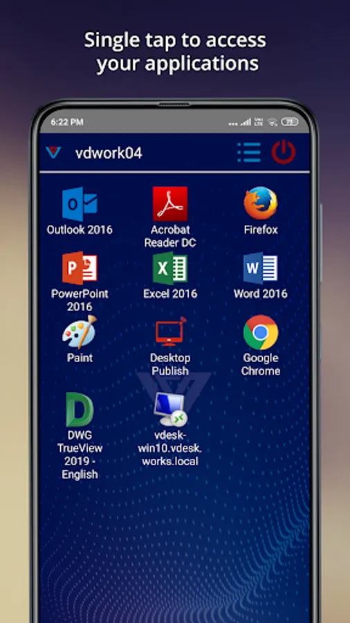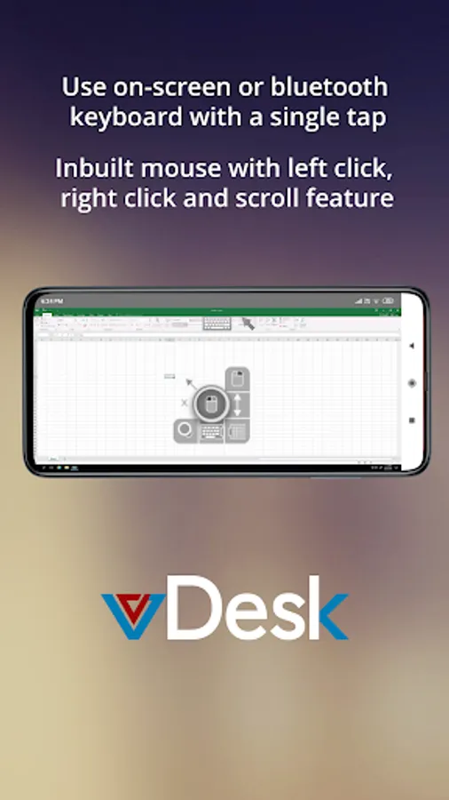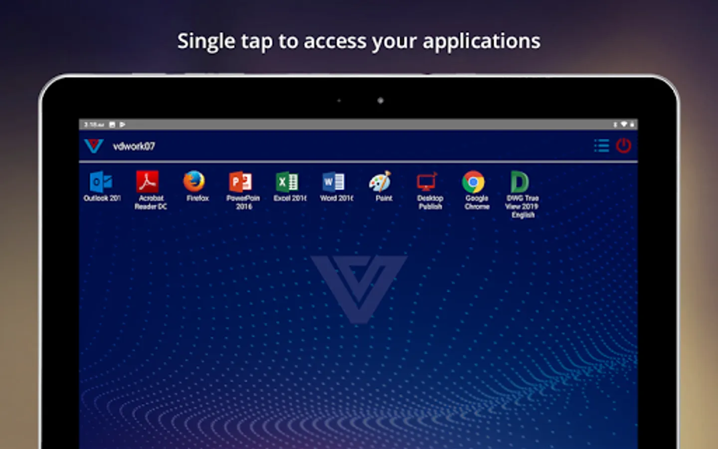 vDesk Android client can be used on any android device to get full control over vDesk Published Desktop and Windows Applications like Microsoft Office, Adobe Acrobat, Firefox etc.