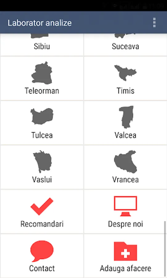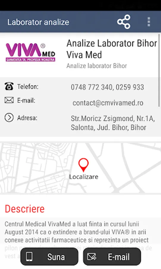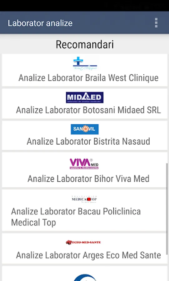 The application provides comprehensive information about medical analysis laboratories, clinics and collection centers in Romania.