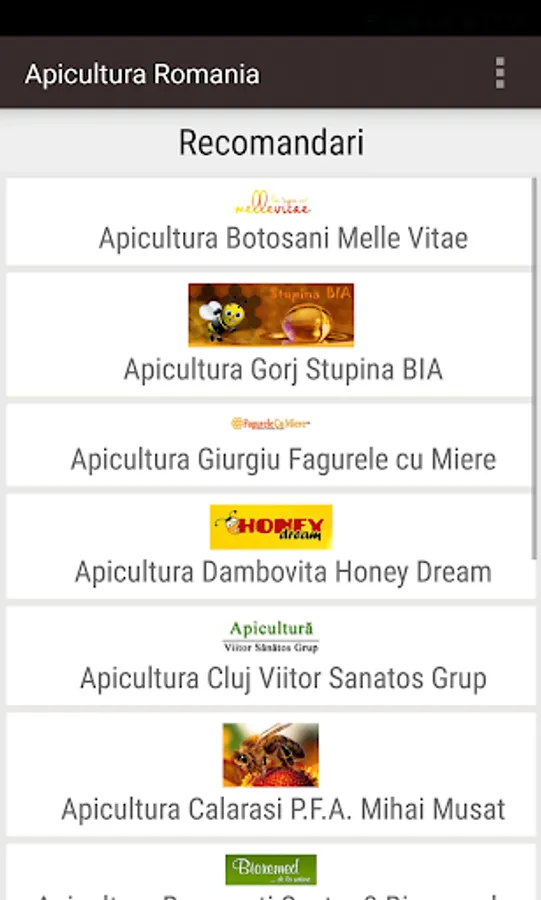 The application provides complete information about Romania beekeepers, honey producers and distributors of natural and derived products (pollen, propolis tincture with honey comb).