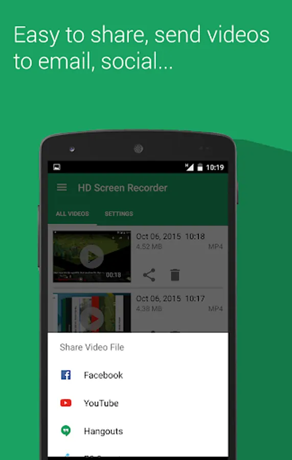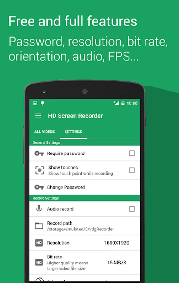HD Screen Recorder is free ,no require root, no ads, very easy to use, and recording high quality videos.