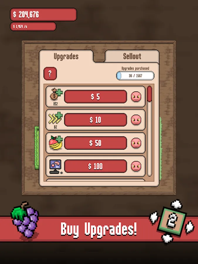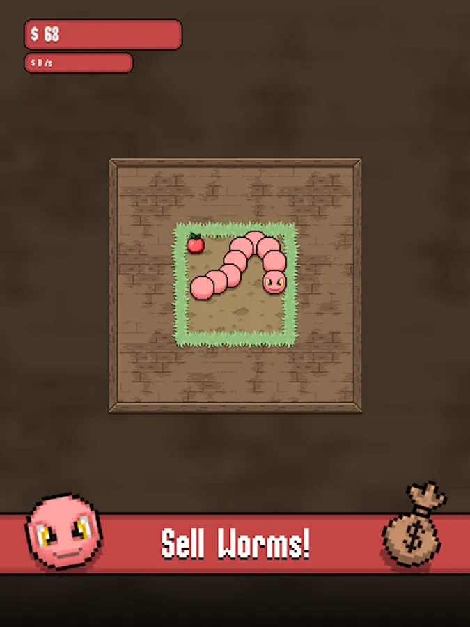 You start with a little Worm and feed it some fruits. When it can't get any bigger or it is in danger of self-harm it will be sold. Now you can improve your Worms by purchasing Upgrades or you buy even more valuable Worms to sell. The choice is yours!