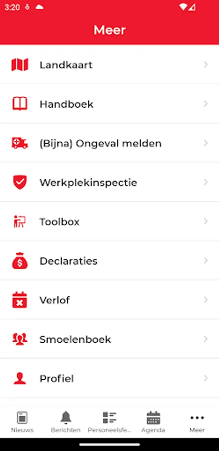 Welcome to the Schreuder app! Here you will find all the information you need as an employee. Here you will find your pay slips, the staff handbook, the face book, news items. You can request leave and new work clothing here or ask your colleagues a question.