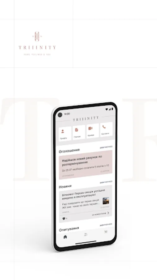 Meet the TRIIINITY mobile application for the residents of the TRIIINITY residential complex, where you will find the opportunity for convenient communication and easy search for the necessary contacts.
