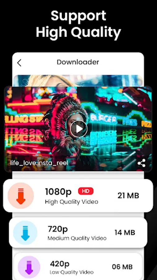 • Video player: All Video Downloader supports all popular video formats, including MP4, AVI, MKV, WMV, and more. You can also play videos in the background while using other apps.