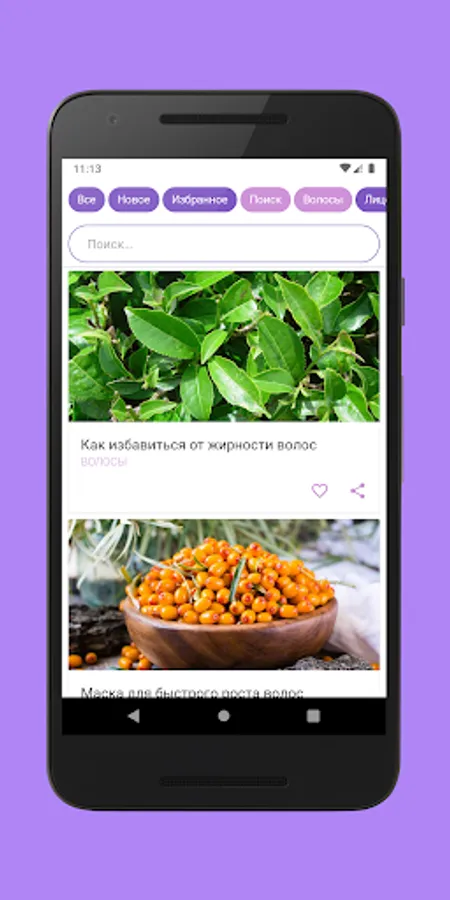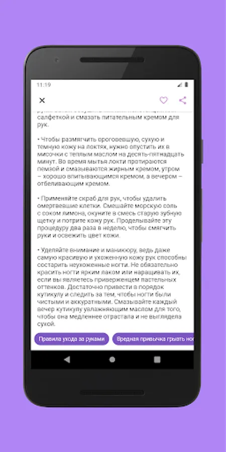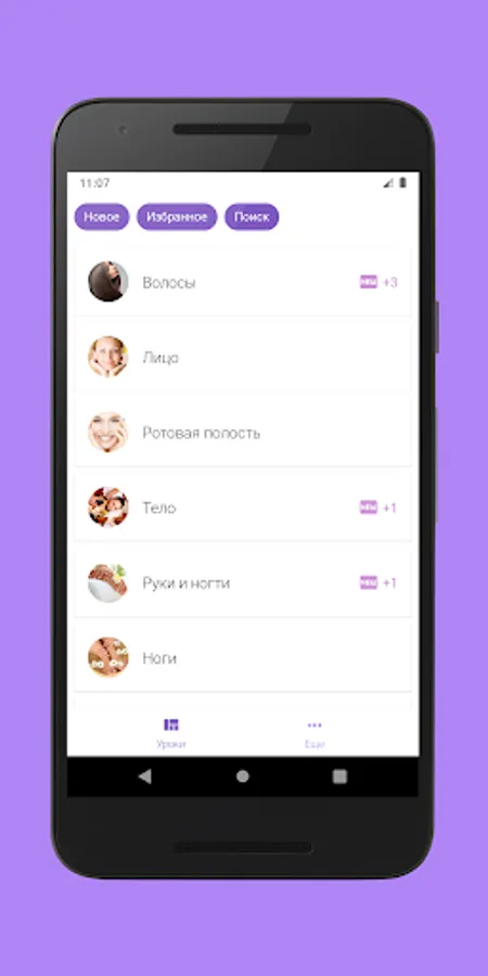 The application has 7 main tabs: hair care, facial care, oral care, body care, hand care and nail care, foot care and sports. Here you will find many tips on how to keep in shape and look great.