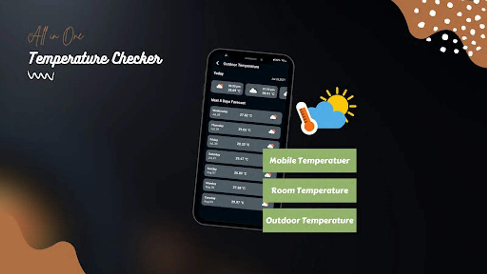 Introducing the new and innovative temperature app that accurately shows indoor, outdoor, and mobile temperature and forecasts! With this app, you will never be caught off guard by a sudden temperature change again.