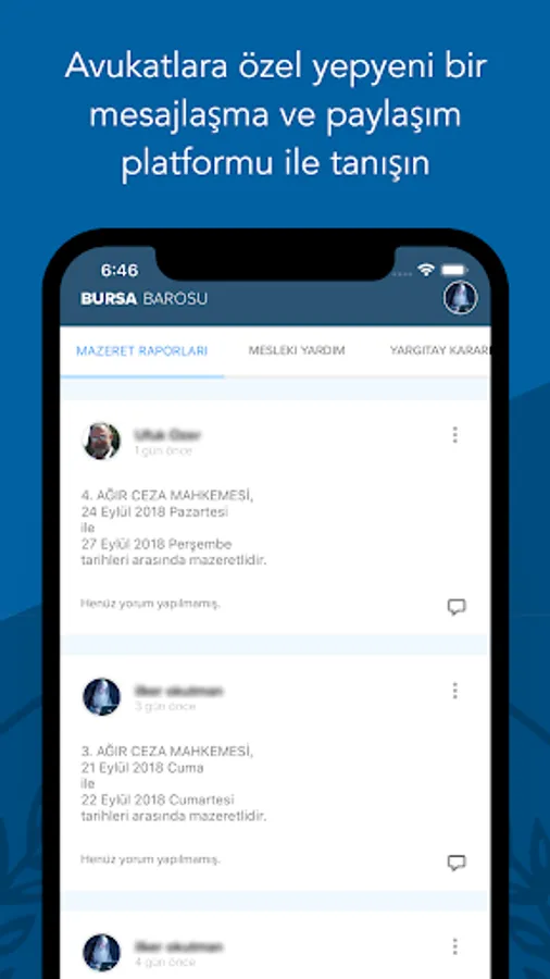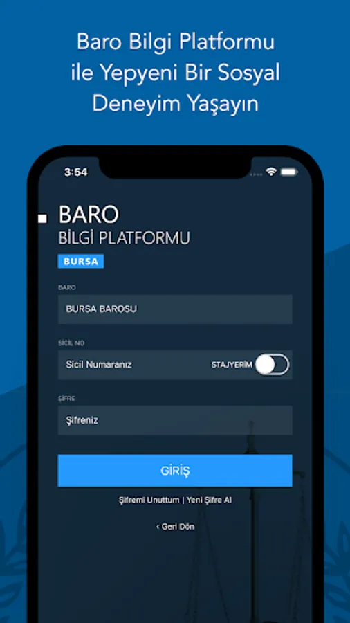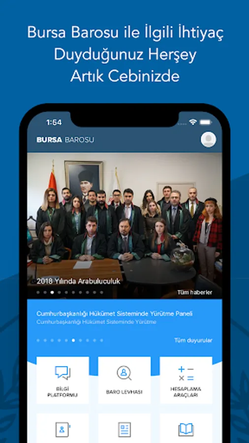 Bursa Bar is official mobile application. Baro's news, announcements, events and digital publications, baroque, guide, announcement, calculation tools and many other features to make your work easier, WhatsApp software in the "My Account" groups on a single platform and subject to view as many additional features social sharing and communication between lawyers.