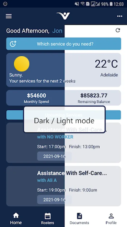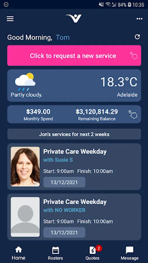 vAboutMe enables clients to view their ongoing services, preferred carers, the latest blog posts and their profile