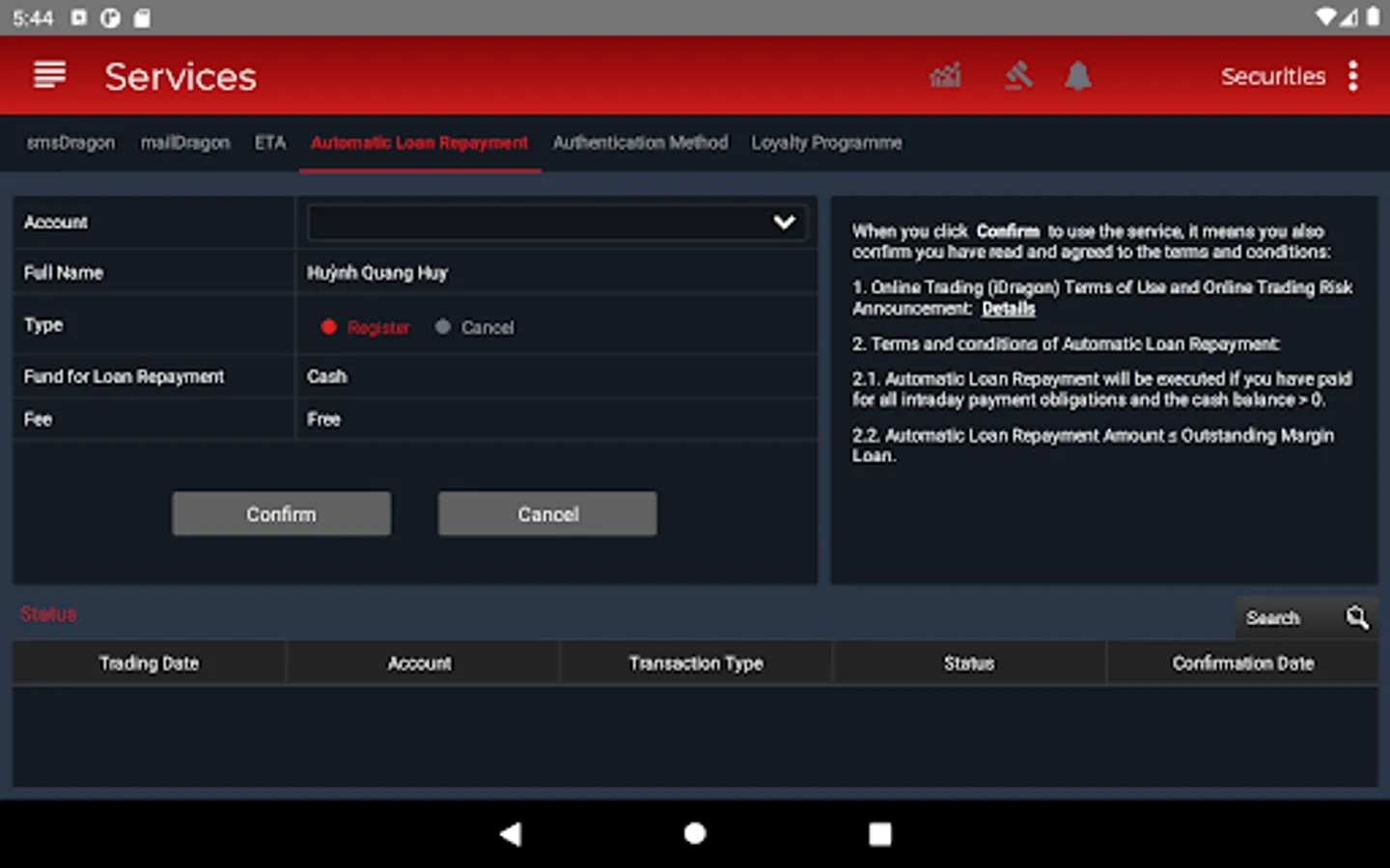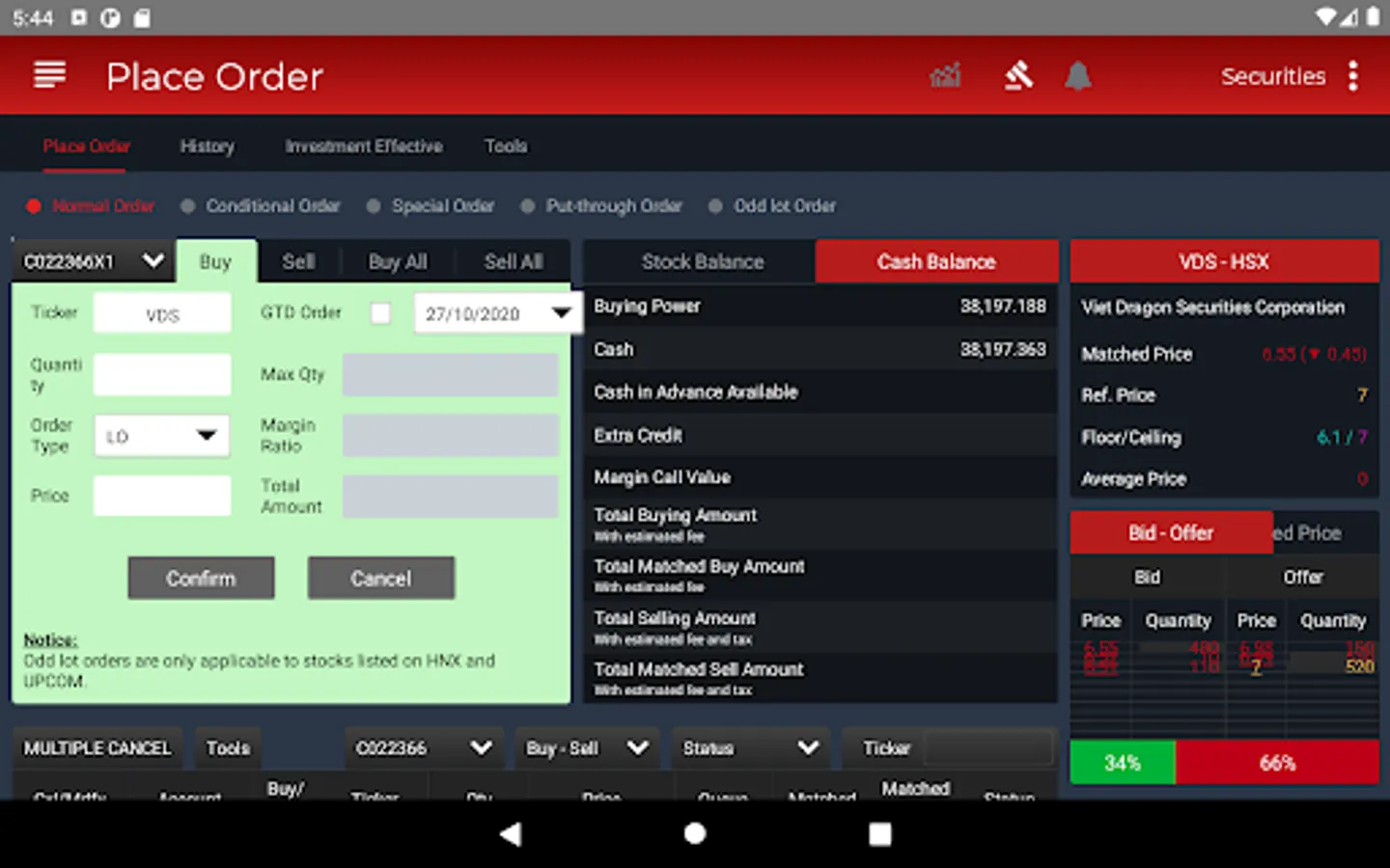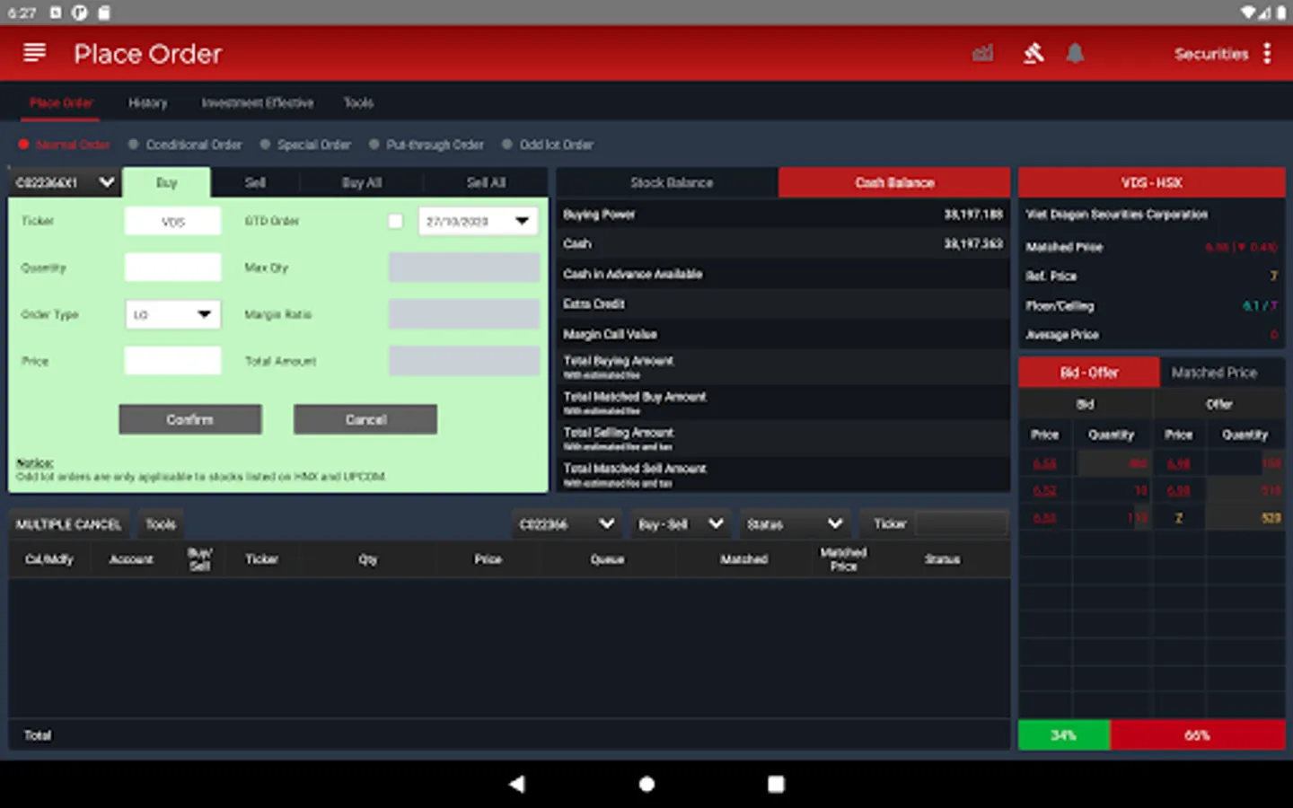 iDragon is the optimal choice of customers when trading securities on phones running Android 6.0 and above. If you have any questions, please contact Customer Service Department 028-6299 2020 or email idragon@vdsc.com.vn