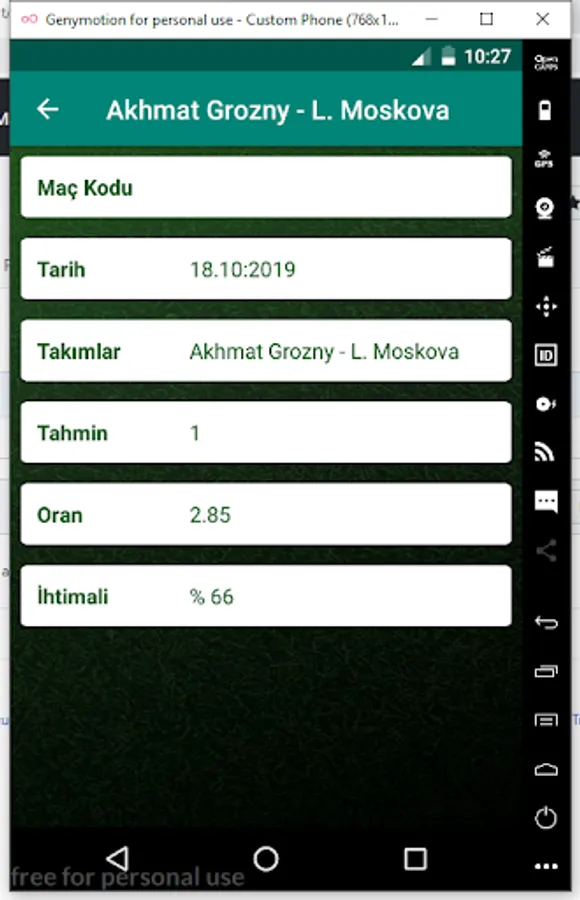Our application does not play betting. Only comments and predictions on the results of the current matches.