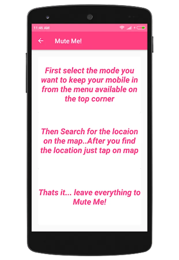 With Mute Me! as soon as a person walks into an office, meeting area, praying area, church, business place, Mosque or any other place where you might feel uncomfortable with a ringing phone, the app automatically mutes the ringtone of your phone. The coordinates of Mute Me! activates as per your predefined settings; the user don't have to worry about switching off his phone or putting at it to silent mode.