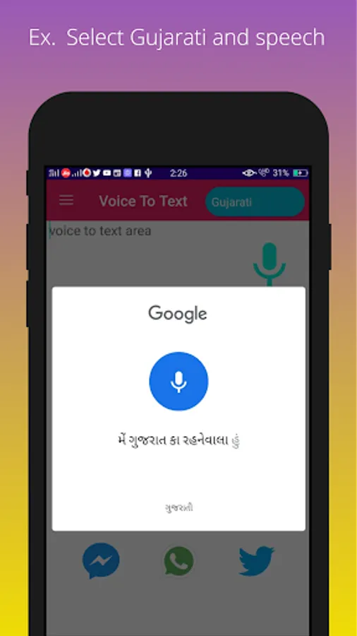By installing this speech to text application, you will be able to share your texts or notes with your friends or for other professional use. You can share your notes by messenger, whats app, Facebook, twitter, viber and email etc.
