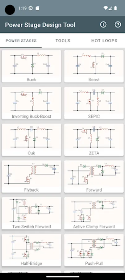 All the tools in this app are also included in the "Circuit Calculator" app: