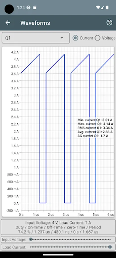Current and voltage waveforms allow to see how a power stage works without spending time for simulation.
