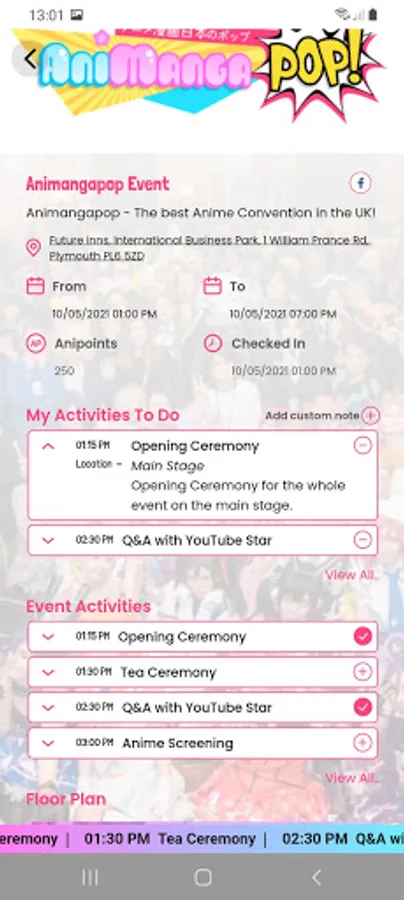 Keep track of what’s going on and where. Get notifications about the activities you most want to see by adding them to your own personal ‘to-do’ list. Live chat with other convention attendee’s, access the floor plan, get the latest show news, collect and redeem your ‘Anipoints’ and more!