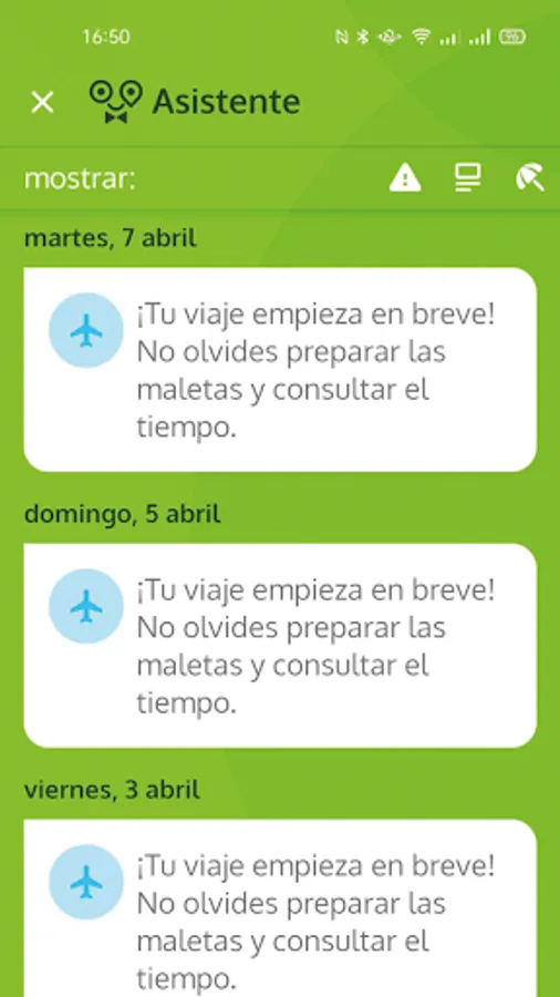 • All the details of all your trips in one place: travel dates, times, origins and destinations, information on flights, hotel reservations, services and itineraries included, reservation status, useful contacts, etc.