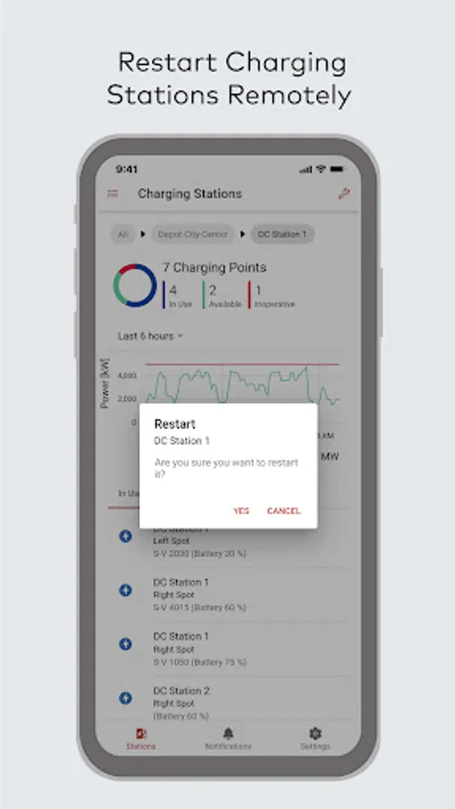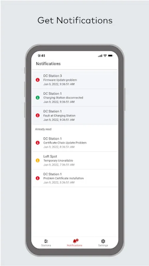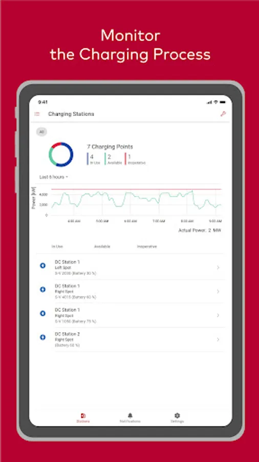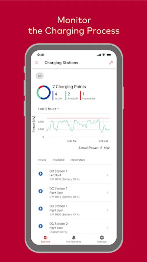 Use the vCharM app to keep track of your charging stations, no matter where you are.
