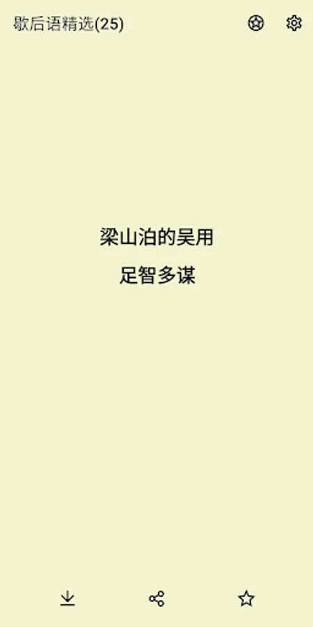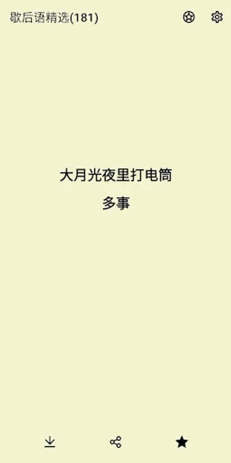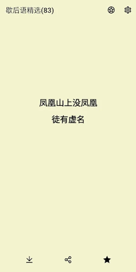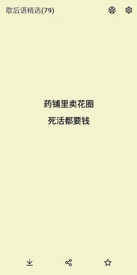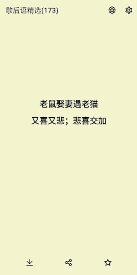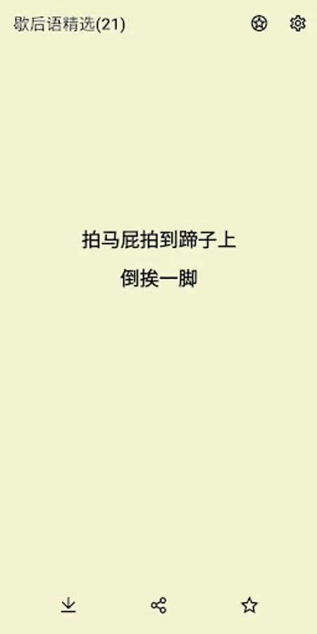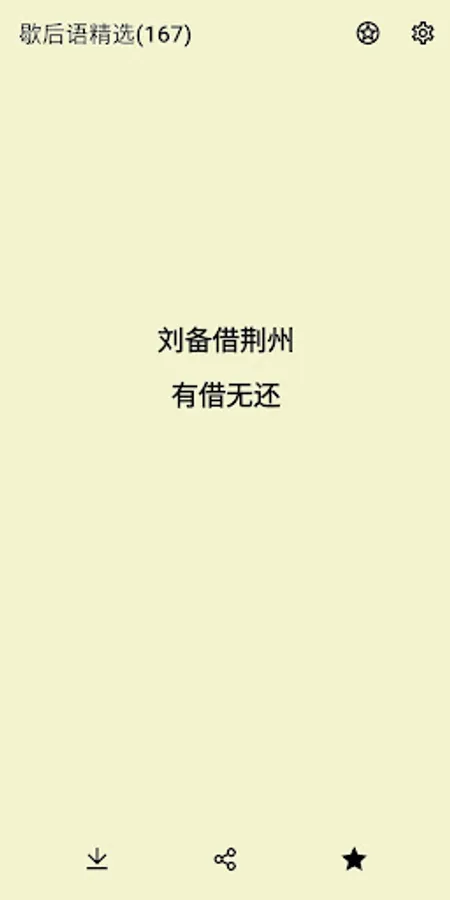 歇后语精选 app,内置1万多条经典歇后语,是一本歇后语大全辞典。收藏功能,便于记录自己喜欢的歇后语,同时还能将歇后语另存为图片,也可以分享给朋友们,一同学习进步。