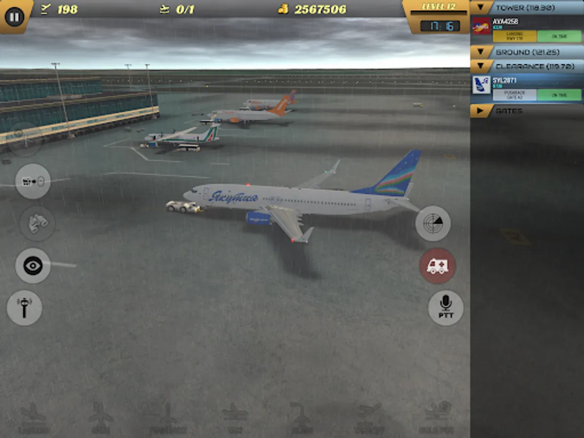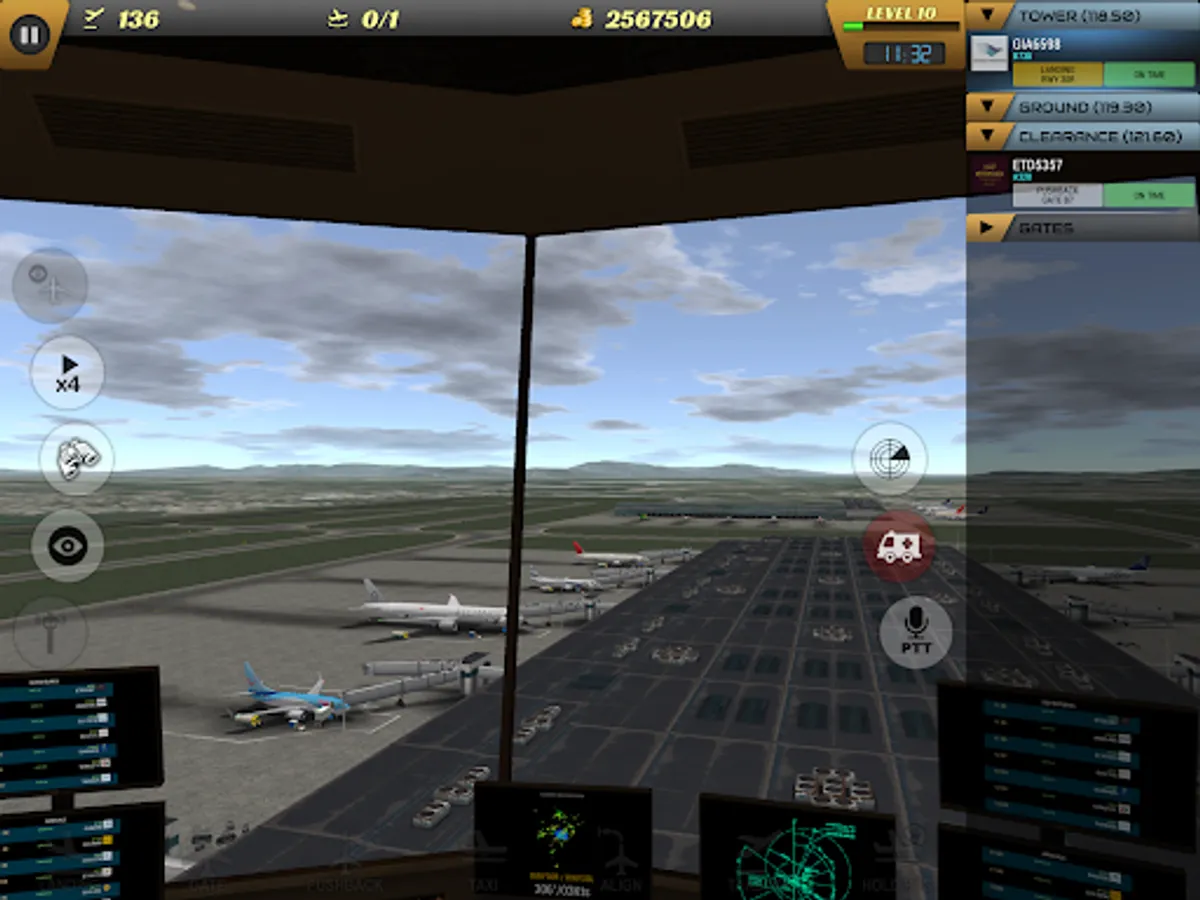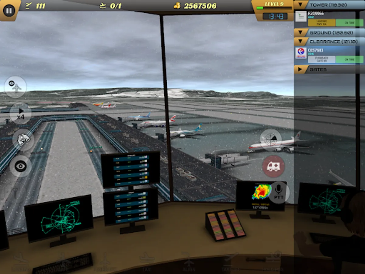 In this simulation game, you're an air traffic controller at a busy airport. The goal is to guide planes safely landing parking and taking off, avoiding collisions between them.