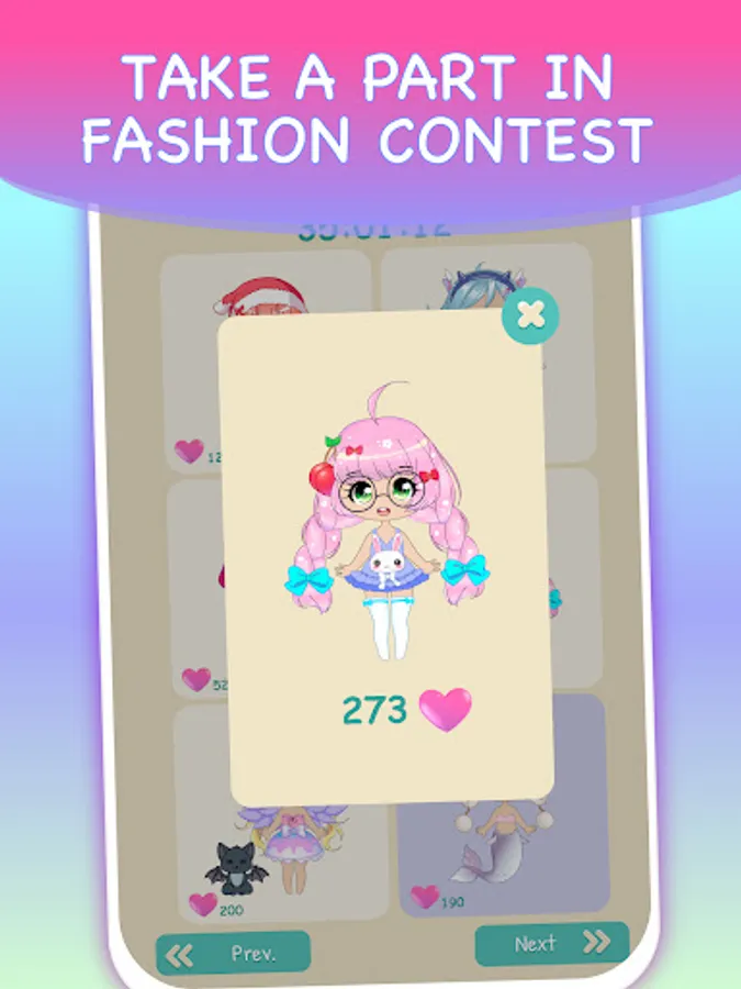 Do you like pocket size chibi dolls dress up , gacha cute app for girls, 3d avatar maker and anime avatar studio? Then create your own princess doll and show it to your friends. Surprise them by making gacha avatar. Gather your own collection of cute anime girl!
