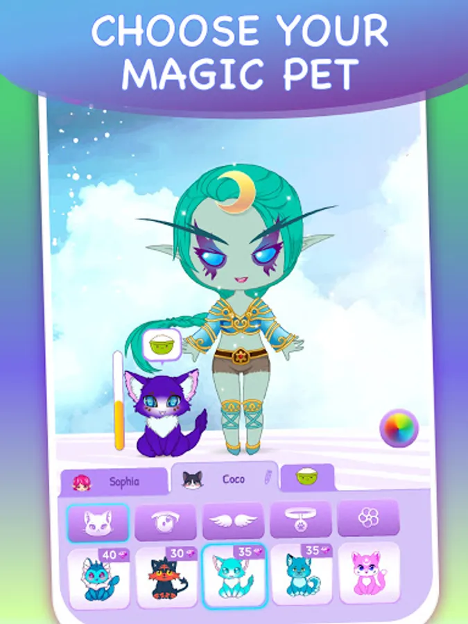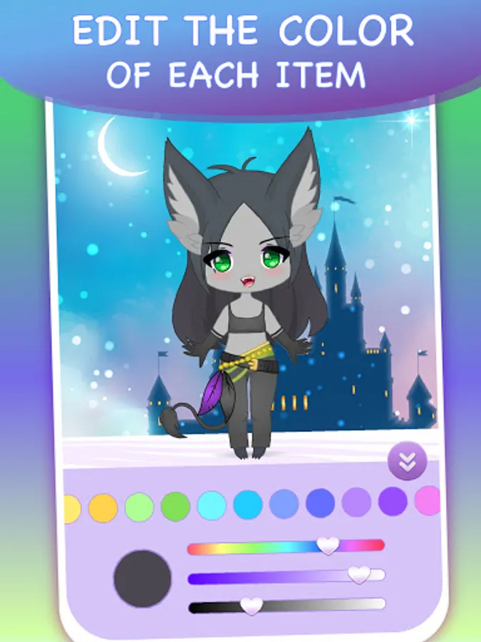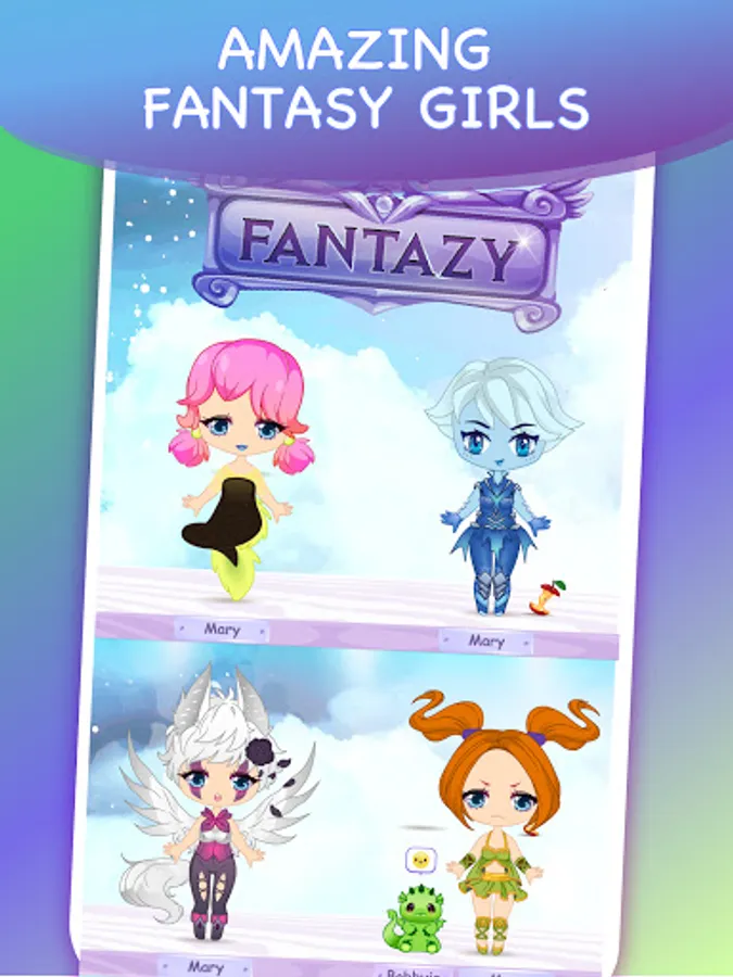Now you can make you own magic girl so easily! You can use your mystical doll as an kawaii avatar for social networks or make anime wallpapers with your adorable fantasy character! Make your own collection fantastic creatures with our app!