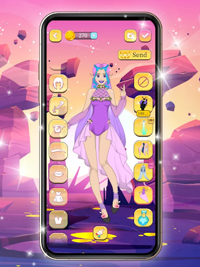 Pick the cutest clothes and the best hairstyles, design your manga fantasy dolls in the anime style and use it right away. Play with this amazing free games for girls to make your unique cartoon look, show your imagination and fashion sense every time you make a new cute avatar on your smartphone and let's try fashion battle! Make your own anime girl today!