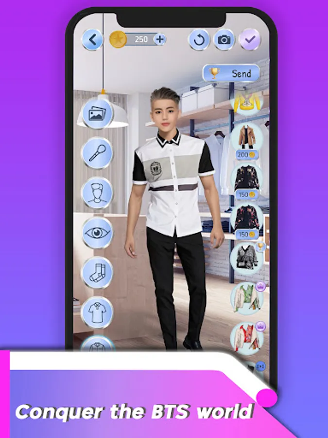Not only can you dress up your idols, but you can also create your very own kpop avatar. Customize every detail, from the face shape to the clothes, and bring your dream Pop star to life.