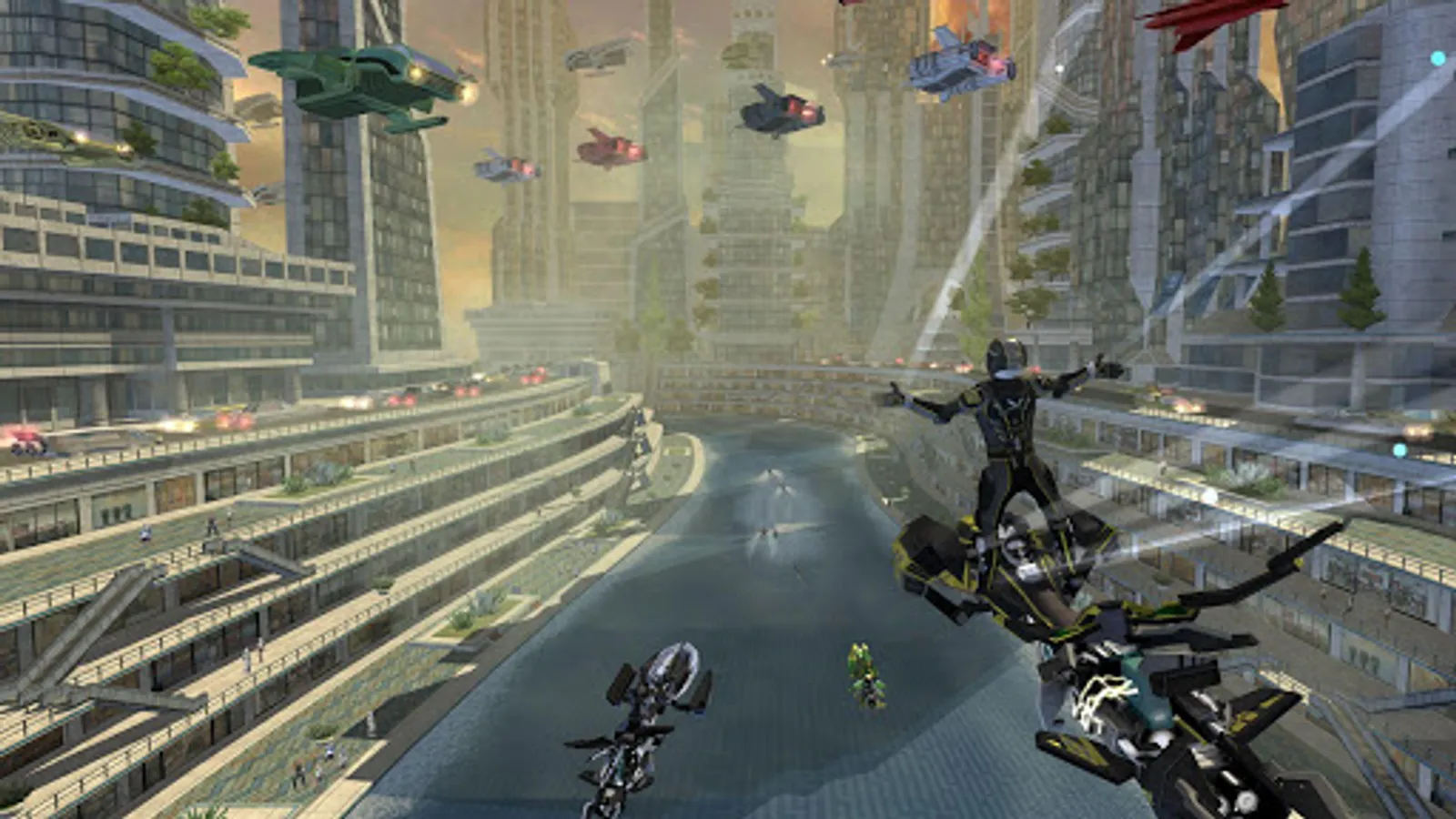 • Transforming Vehicles - Collect and upgrade a garage full of blisteringly fast hydro jets that transform while you ride them. Win money to upgrade and customize each one.