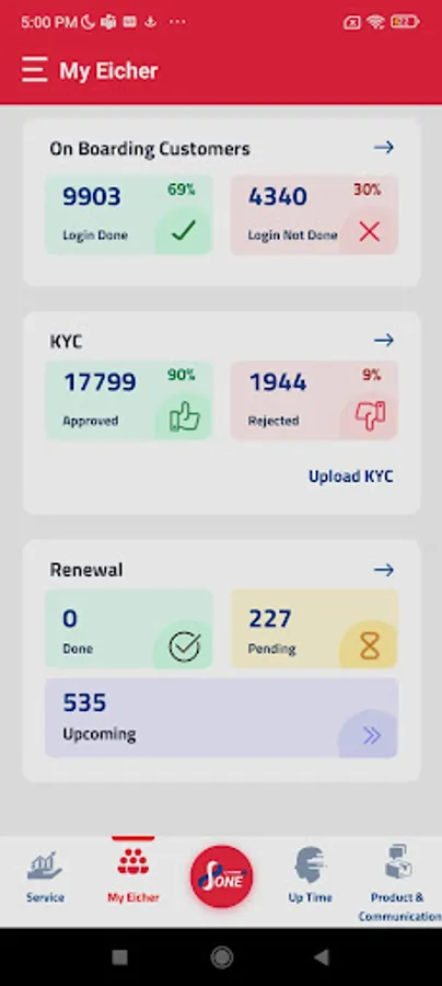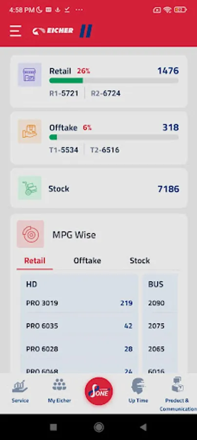 Real time visibility of critical business operation KPIs for Sales, Service, Uptime and My Eicher
