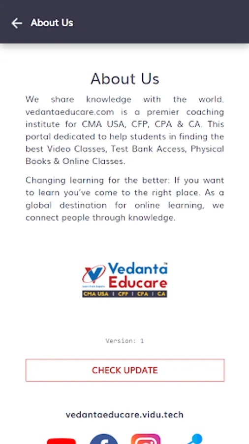 We share knowledge with the world. vedantaeducare.com is a premier coaching institute for CMA USA, CFP, CPA & CA. This portal dedicated to help students in finding the best Video Classes, Test Bank Access, Physical Books & Online Classes.