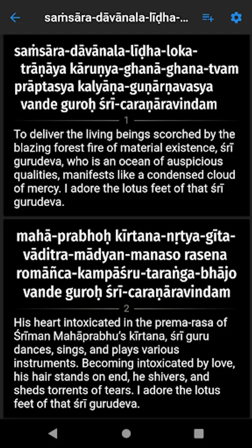 The Kirtan app is a collection of gaudiya vaishnava kirtan and bhajans, which are devotional songs composed in glorification of God and his associates. The followers of Sri Chaitanya Mahaprabhu under the guidance of Rupa Goswami (rupanuga) composed these song to teach pure bhakti (devotion) to the supreme personality of Godhead, Lord Krishna. Singing, memorizing, and practicing the teachings of these devotional songs is essential in sadhana (devotional practice) on the path of bhakti yoga.