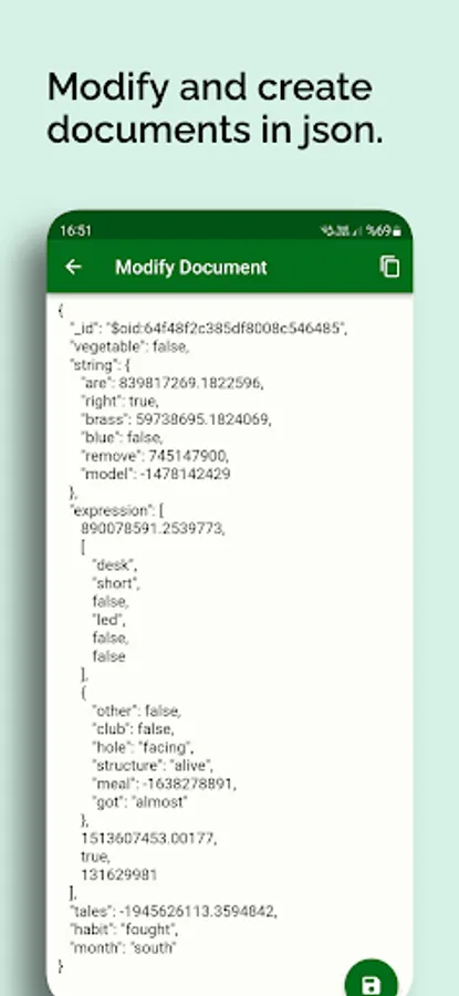 - On editing page; documents are represented in json string format