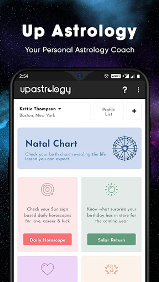 - Simply create your profile with the birth date, time and place and you are ready to explore yourself astrologically. Up Astrology, the app is your personal astrology coach.