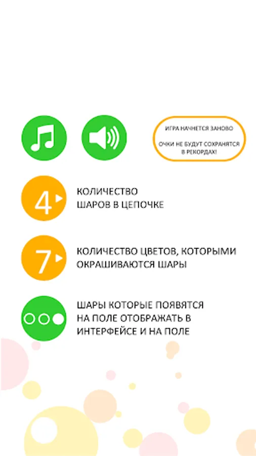 The game board is a grid of 9 by 9 cells. In one move, three random colored balls appear in random cells. The player needs to make a chain of five or more balls. Chains are considered vertically, horizontally and diagonally. You can move only one ball and then only if between the old and the new place is a passage.
