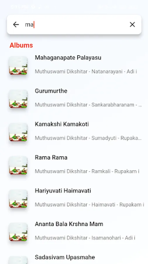 The Application provides listeners access to rare compositions of Muthuswamy Dikshitar, part of the famous Trinity of Carnatic music, as well as other composers, performed by Jaysri and Jeyaraaj on the Veena. Key features of the app are effective use of filters based on parameters like deity, raga, tala, composer etc. The app will showcase over time the 1000 compositions and 100 raga Alapana project of the veena couple. The vision of the app is to reach out to the student and Rasikas with music lovers community on the move all over the world.