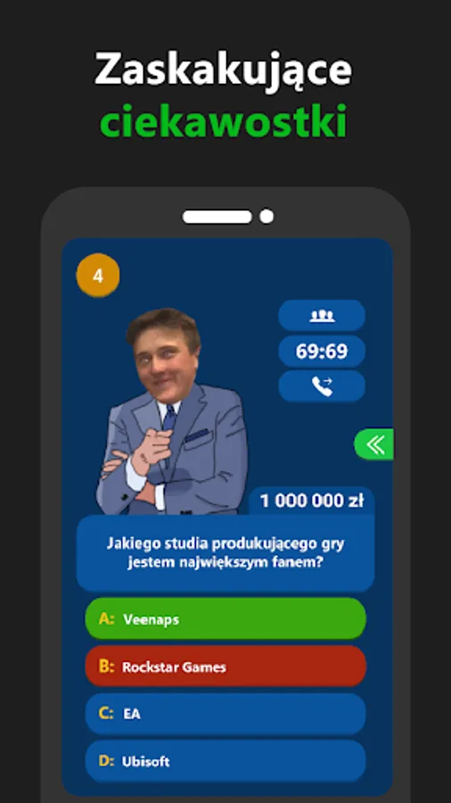 Hubilionerzy is a game reminiscent of the very popular quiz show Millionaire, but it differs in one major difference. The leader is much handsome. The game was created with the assumption that you would smile at least 5 times during the game. If it is successful leave a positive opinion ...