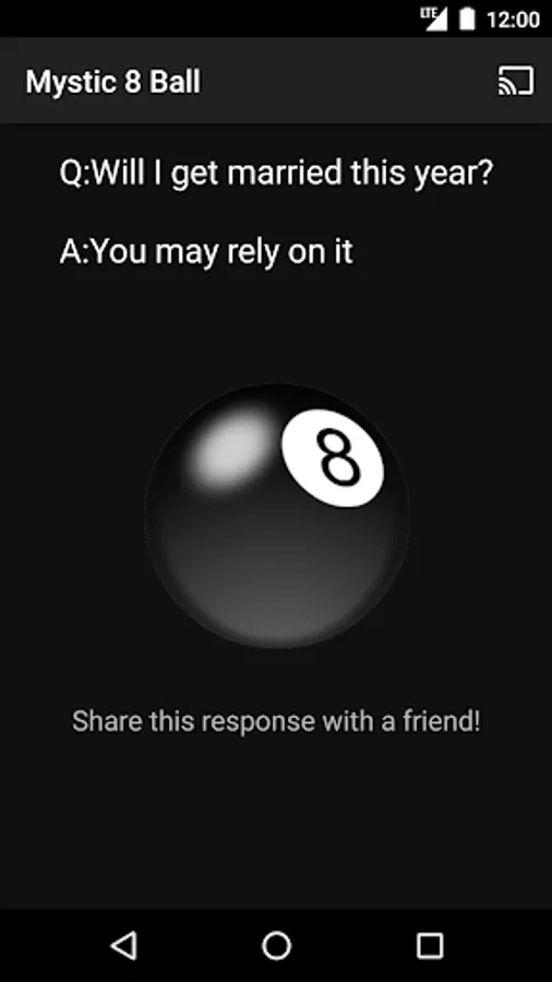 The information, including but not limited to, text, graphics, images and other material provided by the Mystic 8 Ball are for entertainment purposes only. It is not intended to be a substitute for personal or professional medical advice, diagnosis or treatment. Always seek the advice of a professional with any actual questions you may have, and never disregard professional medical advice or delay in seeking it because of something you have read on the Mystic 8 Ball.